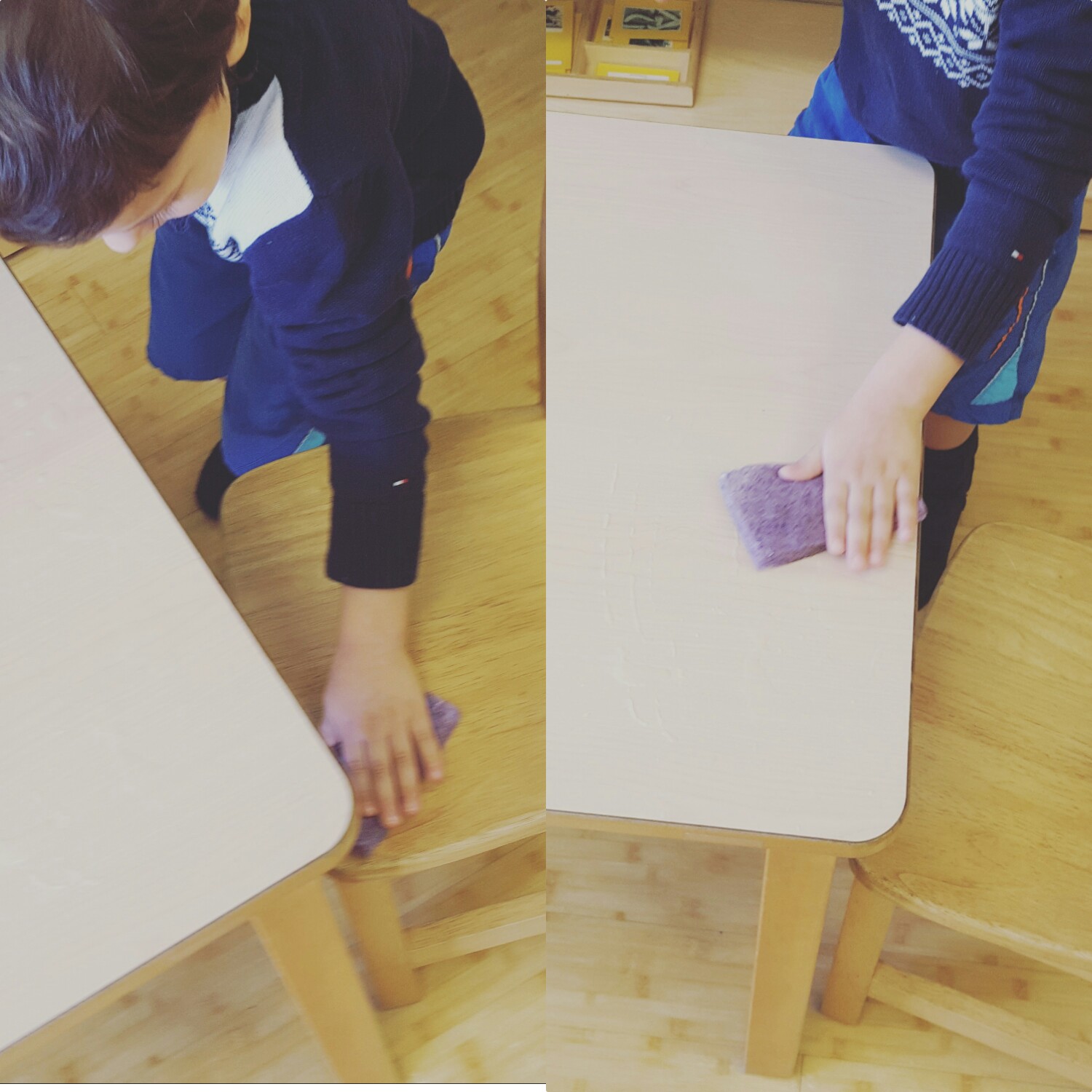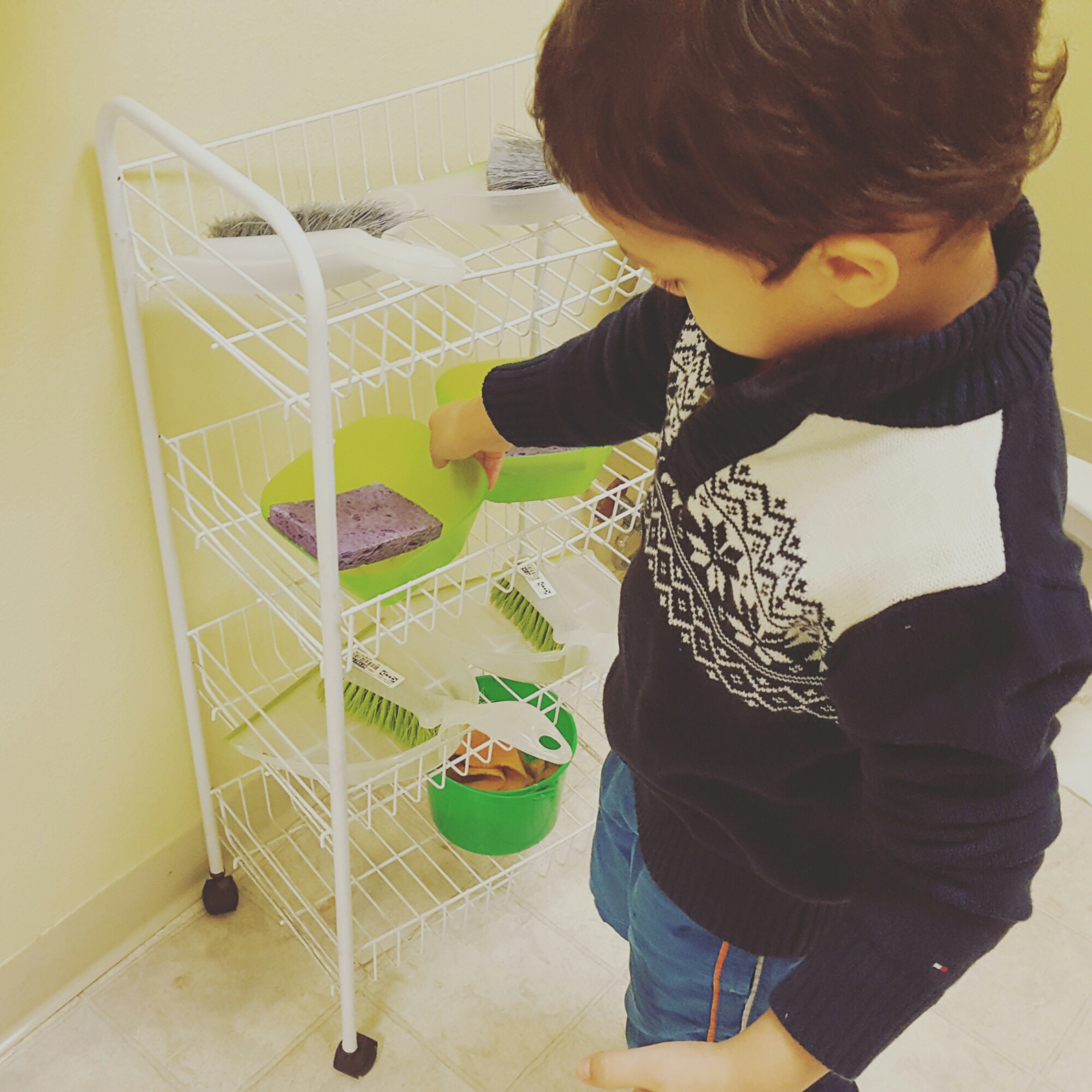 A great little activity to teach something new while getting sensorial needs met. At this age, they are able to clean up their mess. So don’t be afraid to make them work!